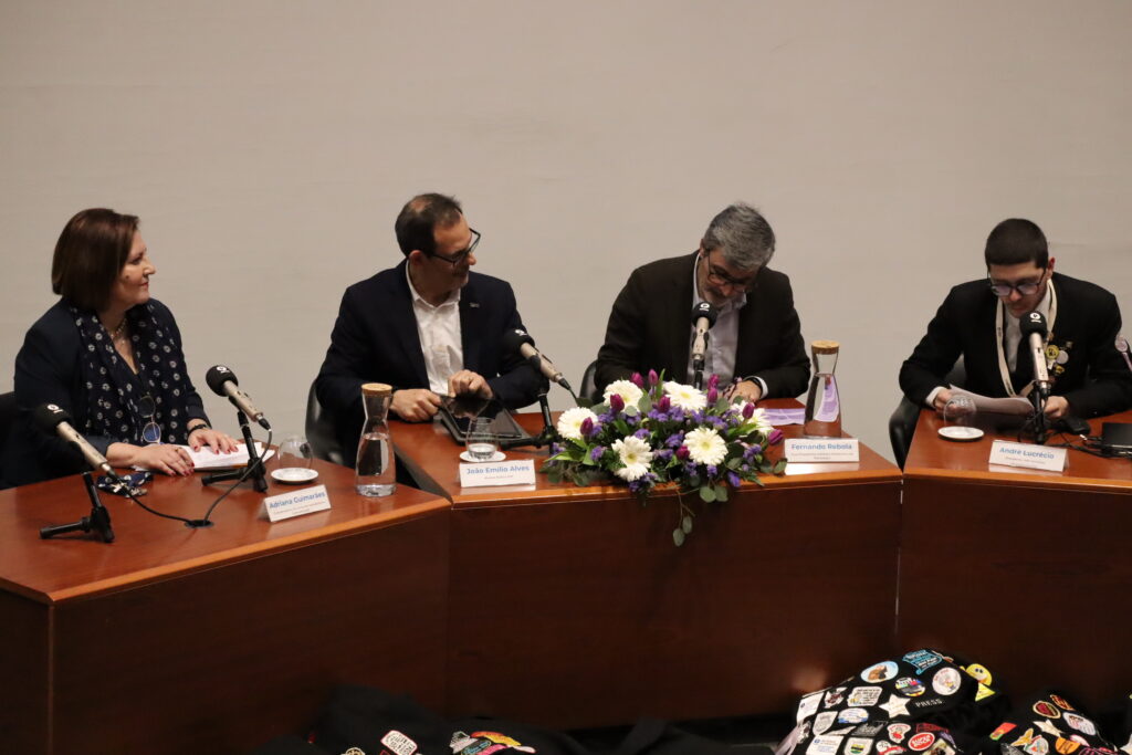 Jornadas da Comunicação celebram 30 anos com olhar no passado e foco na inovação XXX Jornadas da Comunicação 24 Março, 202624 Março, 2026 Mais do que celebrar, esta edição procura contar a história das jornadas e projetar o futuro do jornalismo. A trigésima edição das Jornadas da Comunicação arrancou esta terça-feira, 24 de março, Dia Nacional do Estudante, pelas 10 horas, no auditório Abílio Amiguinho da Escola Superior de Educação e Ciências Sociais (ESECS), em Portalegre. O espaço foi destacado pelo diretor do Politécnico de Portalegre, João Emílio Alves, como “o auditório mais bonito do Politécnico”. Sob o tema “Diversidade e Representação no jornalismo e na comunicação”, a iniciativa promete, ao longo da sua programação, fomentar o debate, a partilha de ideias e a aprendizagem em torno de questões atuais e relevantes para o setor. A sessão de abertura iniciou-se com a exibição de um vídeo que reuniu testemunhos de alunos e docentes, respondendo à questão “o que representam as Jornadas da Comunicação?”. Entre as ideias destacadas estiveram a entreajuda, a reflexão académica, a singularidade da experiência, o reforço da motivação estudantil e o reconhecimento de três décadas de esforço coletivo, sublinhando que o projeto “faz parte dos estudantes presentes e dos que já passaram”. Seguiu-se a intervenção do presidente das jornadas, André Lucrécio, marcada por um tom emotivo. O estudante dirigiu palavras de agradecimento à equipa organizadora e apelou à continuidade do projeto. No último ano da licenciatura em Jornalismo e Comunicação, despediu-se com gratidão e evocando as memórias construídas ao longo do percurso académico. A professora Adriana Melo Guimarães, coordenadora da licenciatura de jornalismo e comunicação, reforçou a importância do evento enquanto espaço de “aprendizagem e inspiração”, manifestando o desejo de que as reflexões partilhadas ultrapassem os limites da instituição. Na sua intervenção, João Emílio Alves saudou os participantes e destacou a longevidade da iniciativa, afirmando que “30 anos não é para todos”. Elogiou ainda a comissão organizadora, composta por André Lucrécio, Denisa Barbu, Ruben Bastos e Luísa Guerra, salientando o papel destes estudantes na concretização do evento. Para o diretor, “a reflexão crítica e a partilha de saber cruzam-se para a produção de conhecimento”, sendo as jornadas uma “marca anual” da instituição e da região, funcionando também como uma “ponte com o domínio profissional” nas áreas do jornalismo e da comunicação. A sessão contou ainda com a intervenção de Fernando Rebola, vice-presidente do Politécnico de Portalegre, que expressou o “gosto em regressar a casa” visto que lecionou na instituição durante muitos anos. Dirigiu cumprimentos à comunidade académica, destacou o papel de liderança de André Lucrécio e deu as boas-vindas aos estudantes do Instituto Politécnico de Tomar, nomeadamente da Escola Superior de Tecnologia de Abrantes, presentes no evento. O momento de abertura ficou ainda marcado pela atuação da tuna académica Papasmisto, que celebrou o seu 32.º aniversário com uma apresentação animada. O grupo interpretou temas originais como “Estudante” e “O Capote”, bem como “Passeio pela Cidade”, da autoria de Dona Maria Soares. O espetáculo encerrou com “Nosso Hino Popopo”, dedicado à comunidade estudantil. O presidente das Jornadas da Comunicação destacou que a 30.ª edição se diferencia pelo seu carácter comemorativo e reflexivo, centrado numa retrospetiva histórica: “o que difere das outras será mesmo o contar de todos estes 30 anos”. Recordando o início em 1996, sublinhou a evolução até à atualidade, marcada pelo digital: “hoje o meio digital é a coisa mais adquirida de sempre”. Relativamente à escolha dos temas, explicou que a organização procura garantir atualidade através da análise de “artigos” e “notícias” recentes, apostando em convidados ligados ao presente do setor. Ainda assim, salientou a importância do equilíbrio geracional: “tentamos trazer sempre pessoas novas, com ideias inovadoras”, sem esquecer de “fazer essa ponte” com profissionais mais experientes. No que toca à organização, identificou como principal desafio a gestão de uma equipa numerosa e a pressão associada à data simbólica: “acabamos por tentar que seja tudo perfeito” e, por vezes, “complicamos o que não é complicado”. Entre as memórias mais marcantes, recordou um episódio do seu primeiro ano, quando ficou sem convidados horas antes de um debate. A solução surgiu rapidamente: “em duas horas tínhamos três pessoas ali sentadas”. Para André Lucrécio, foi “a magia do jornalismo a funcionar”, transformando um momento de crise numa experiência inesquecível. De plateia cheia, começa assim a XXX edição das Jornadas da Comunicação.A mesa de abertura da 30ª edição das Jornadas da ComunicaçãoA mesa de abertura da 30ª edição das Jornadas da ComunicaçãoA mesa de abertura da 30ª edição das Jornadas da ComunicaçãoVice-presidente Fernando Rebola e o Presidente das Jornadas André LucrécioAtuação da Tuna PapasMisto na 30ª Edição das JornadasAtuação da Tuna PapasMisto na 30ª Edição das Jornadas Autores: Francisca do Carmo Coimbra, Dinis Carmona, Rafael Moreno e Isabel Allen Share on Facebook Share Share on TwitterTweet Share on Pinterest Share Share on LinkedIn Share